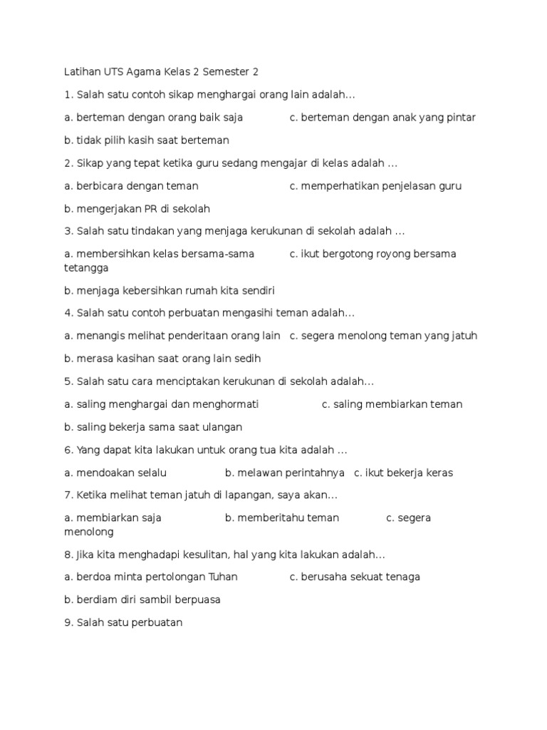 Soal Ujian Agama Kristen Kelas 9 from imgv2-1-f.scribdassets.com Maybe you would like to learn more about one of these? We did not find results for: Check spelling or type a new query. Uts agama kristen kelas 6 semester 1.